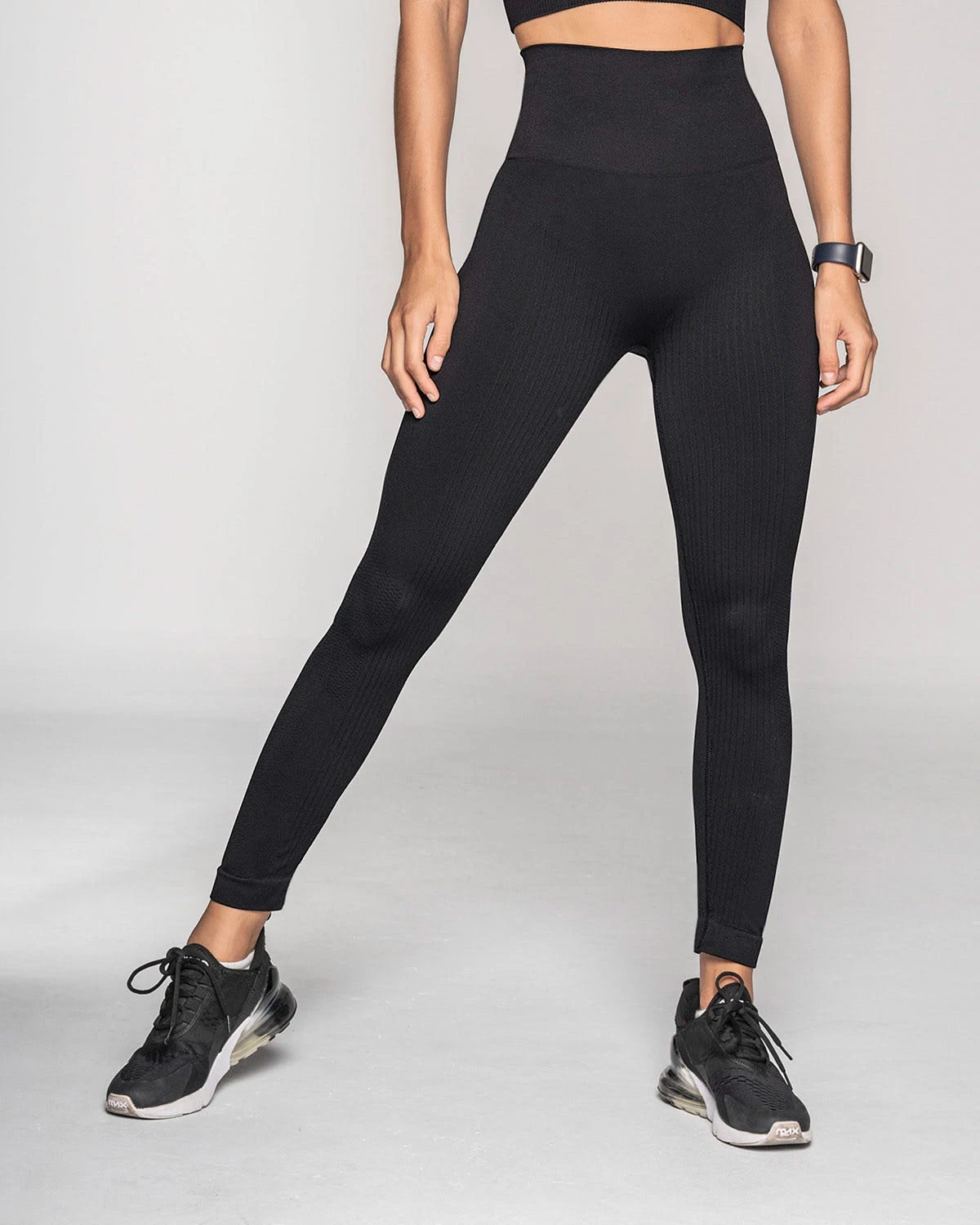 - Ribbed fabric on the waistband and legs for extra targeted compression.