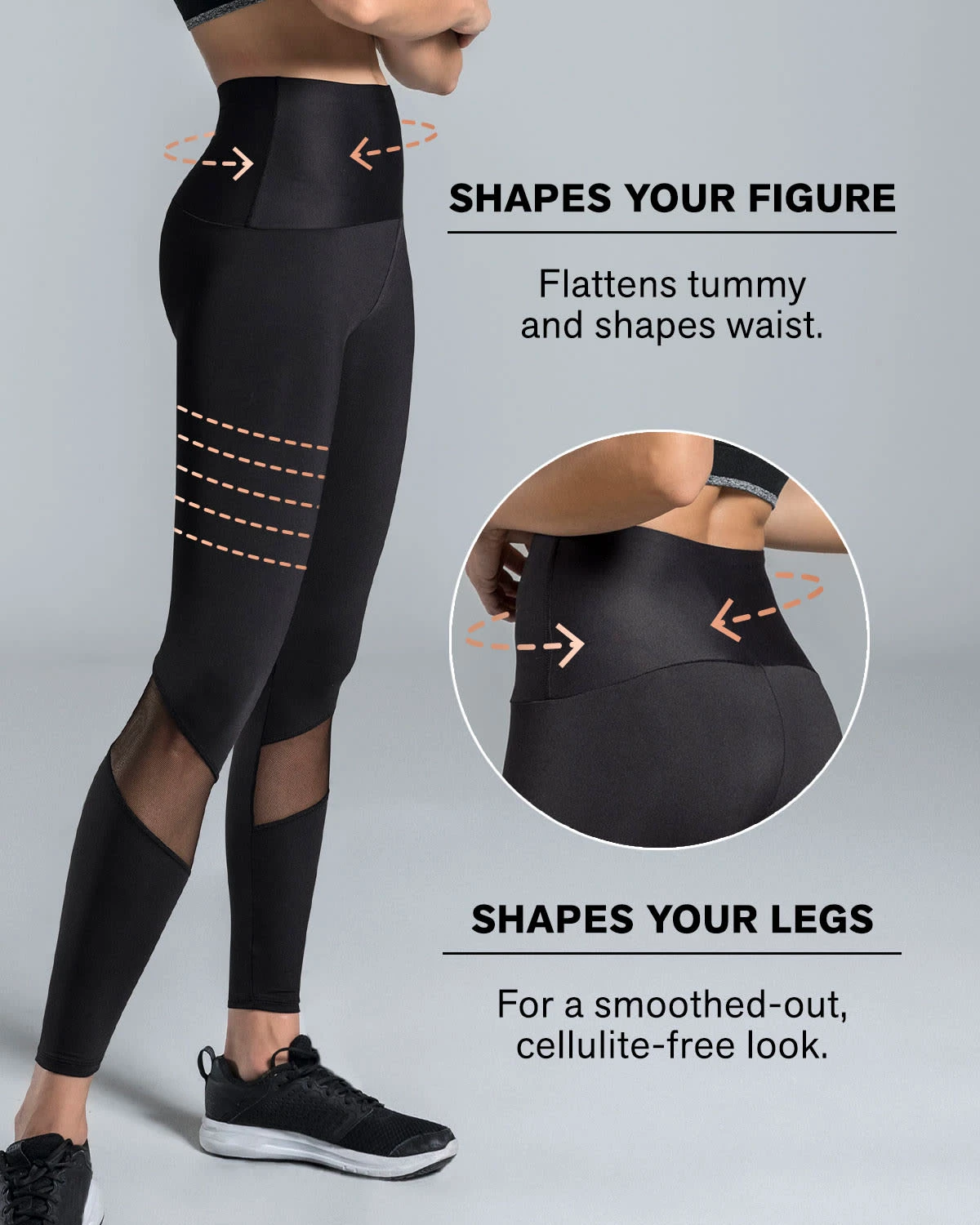 - Double-layered waistband for firm, sculpting compression.