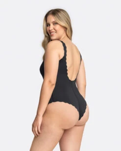Scoop Back Cheeky Scalloped One-Piece Shaper Swimsuit
