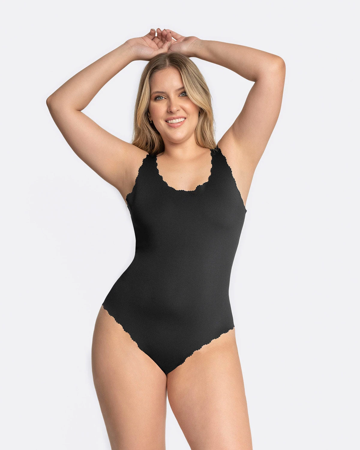 This one-piece swimsuit has absolutely no structure, making it light and giving you a second-skin feel. It has a scoop back and a classic silhouette for a natural look. Moderate compression flattens out your tummy, keeping you confident on sunny days. It’s made of quick-dry material, keeping you feeling fresh and dry while you do your favorite aquatic activities. The scalloped effect of this swimsuit is trendy and unique. Fixed, wide straps offer supreme support. You can even wear it as a bodysuit by pairing it with your favorite shorts, pants, and skirts.