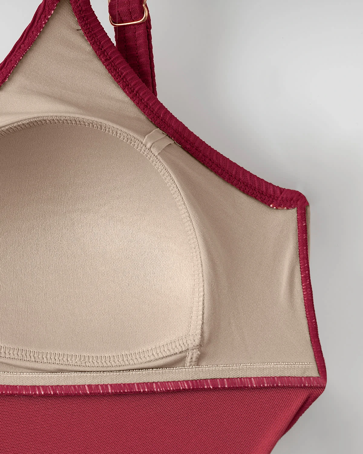 Feel cute and confident at the beach in this sophisticated swimsuit with tulle details and a ribbed texture fabric. It has light compression on the lower tummy, and its fixed foam cups and elasticated underbust band offer support and a rounding effect. The sheer tulle details on the upper tummy give it a touch elegance. It has fixed adjustable straps so you can create a perfect fit.