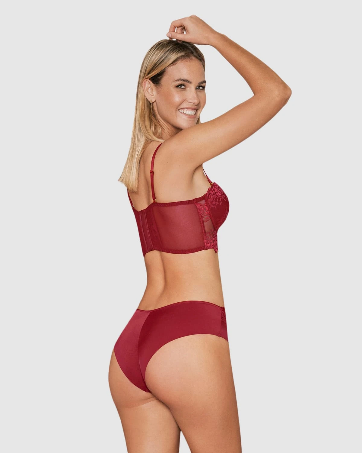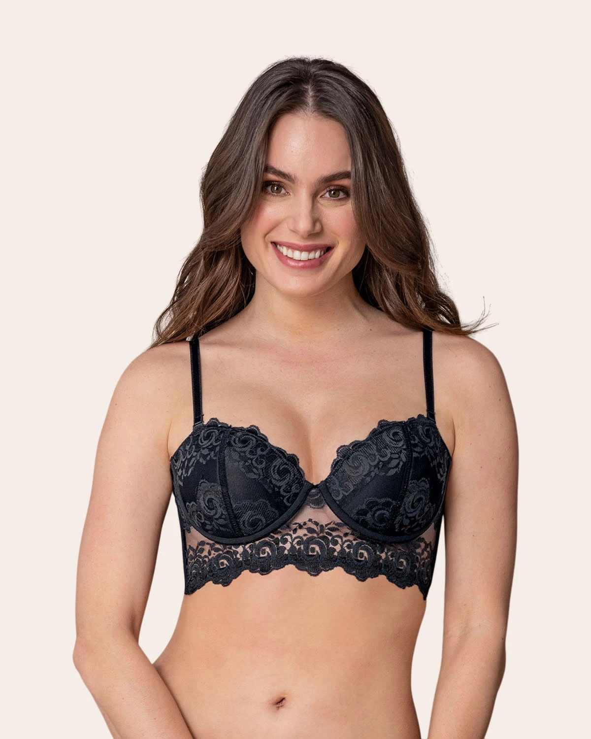 This bustier bra is the perfect combination of supportive and beautiful! It’s made with our signature SmartLace: as durable as it is beautiful, our trademark lace is designed to be anti-pilling, no-itch, and super-soft. The supportive underwire cups of this bra are soft, light, and unpadded. The high-coverage back of this bra is made with flexible boning to ensure that it will stay in place no matter what.