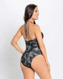 One-Piece Sheer Stripe High-Neck Slimming Swimsuit